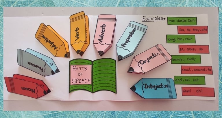 Parts of speech are categories of words based on their function in a sentence. Here are the eight main parts of speech in English